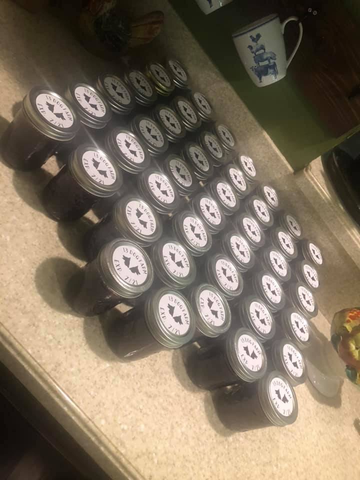Once the blackberries were safely back at the house they were promptly turned into 42 jars of blackberry jam!!
