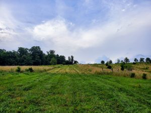 When complete a few hours later, the expanded field was quite pretty. With subsequent mowing the pasture grass will choke out the weeds and the whole field will turn green.