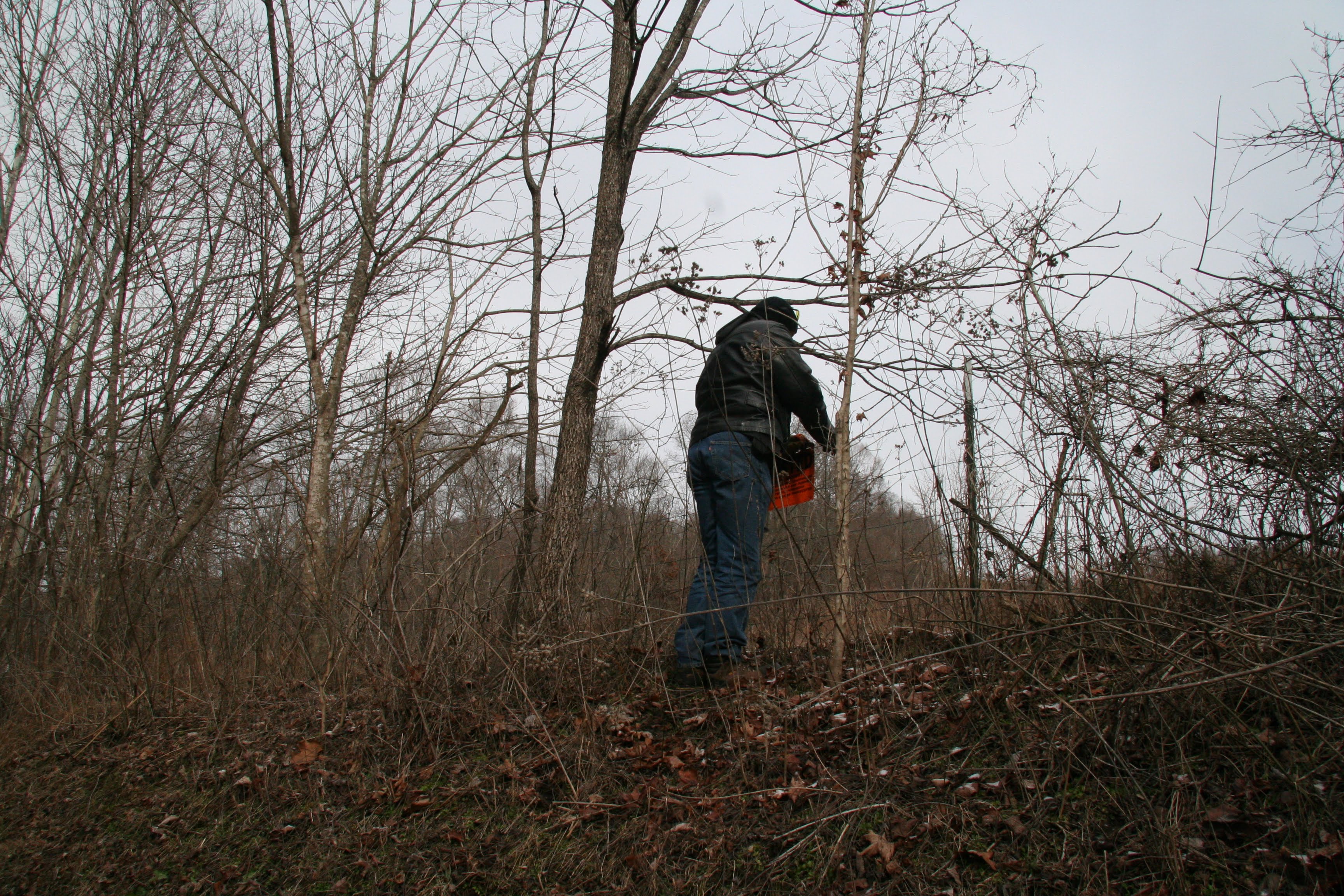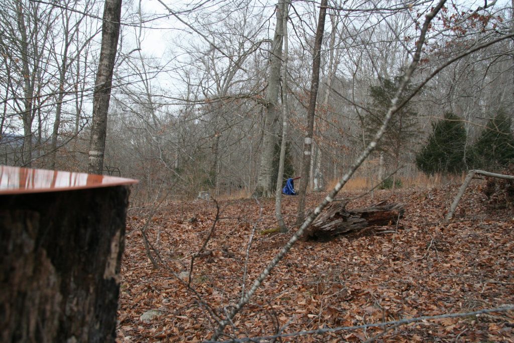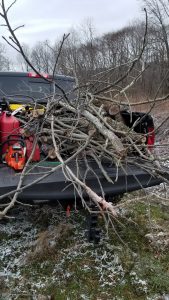 That’s another thing, you apparently bury your family on your property in rural areas. At least this assures us no one will be building right next to us! Oh, we finally met a neighbor, Todd. A young guy with a small boy. He stopped us while we were posting signs to tell us he had a live raccoon trap on our property and that he would remove it as soon as he returned home. Interesting. Must find out his reason for trapping them. A nuisance? Food source? Despite the cold weather, we were able to rid the property of a few fallen trees.