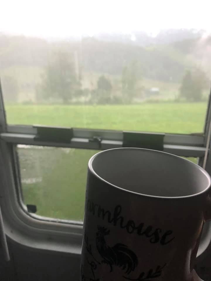 The rain didn’t last long, so we fixed a leak over the bed and decided to binge watch netflix and drink some wine.