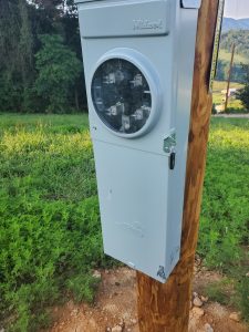 In addition to the mowing we had a chance to see the new power pole and meter for the cabin along with the equipment needed to lift the logs into place