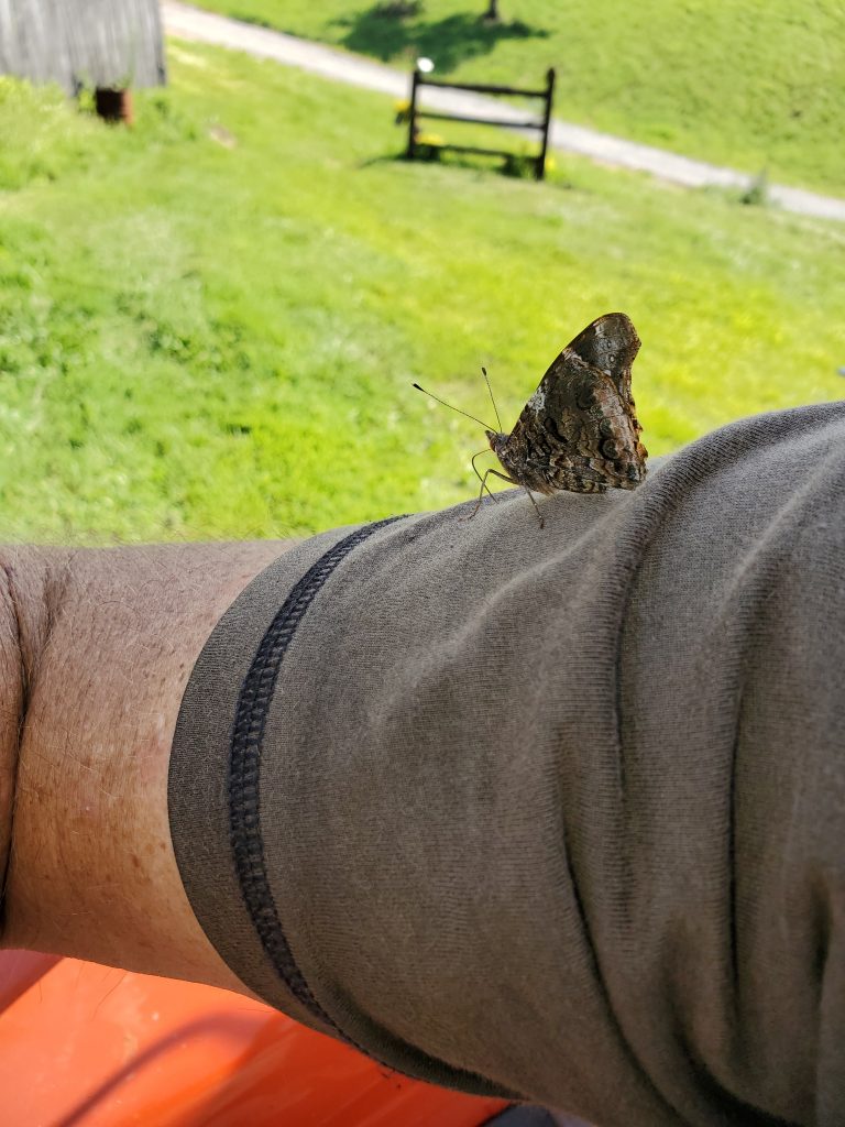 The mowing this trip was assisted by a new friend. A butterfly tagged along for about 40m worth of mowing