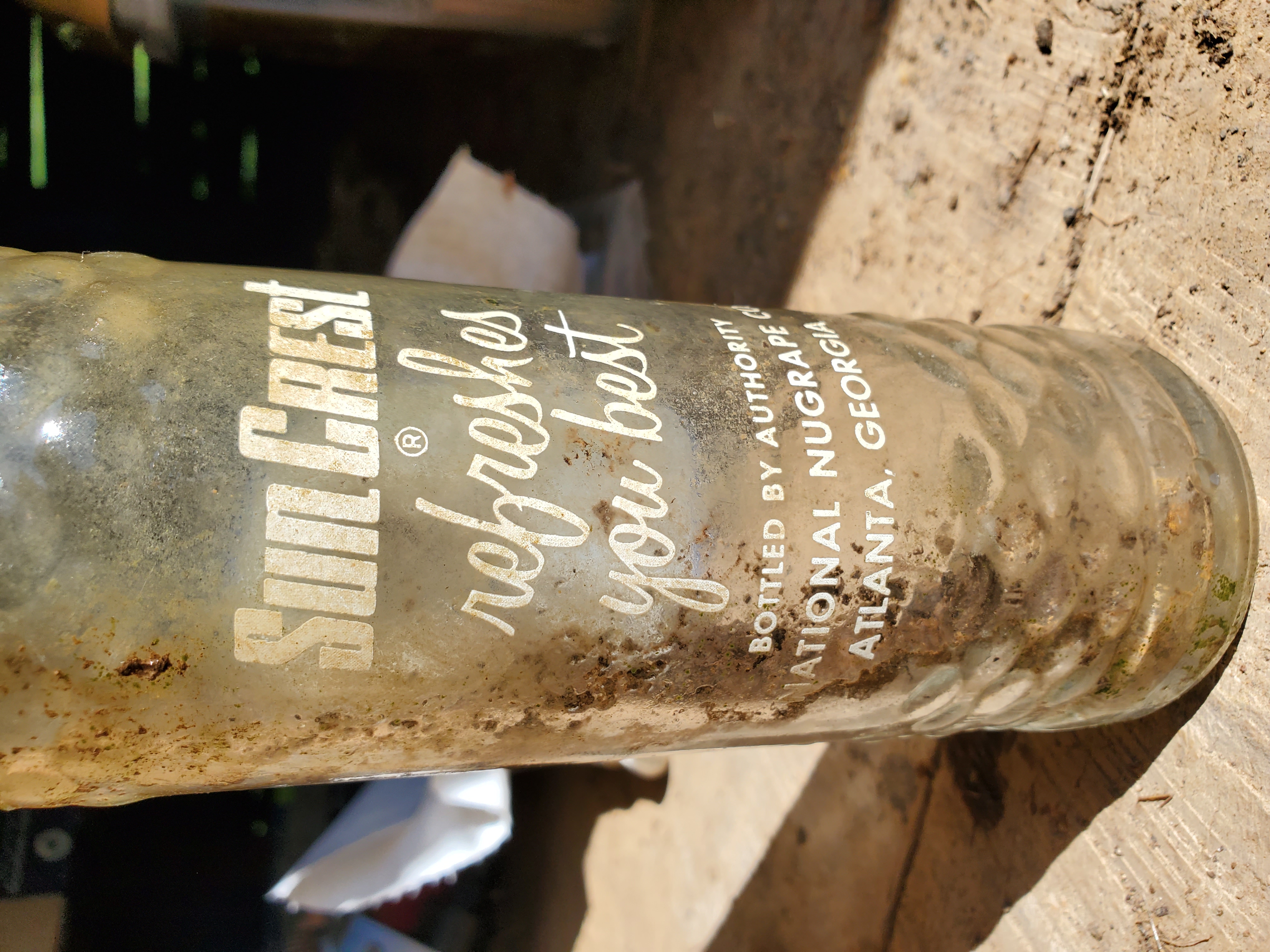 While doing some weed whipping around the barn a very old bottle was uncovered. This bottle had a 1967 stamp in the bottom. Unfortunately the top was broken, but it is still a very cool old bottle. We kept the bottle and once we are fully moved will probably cut the broken top off and make a vase….