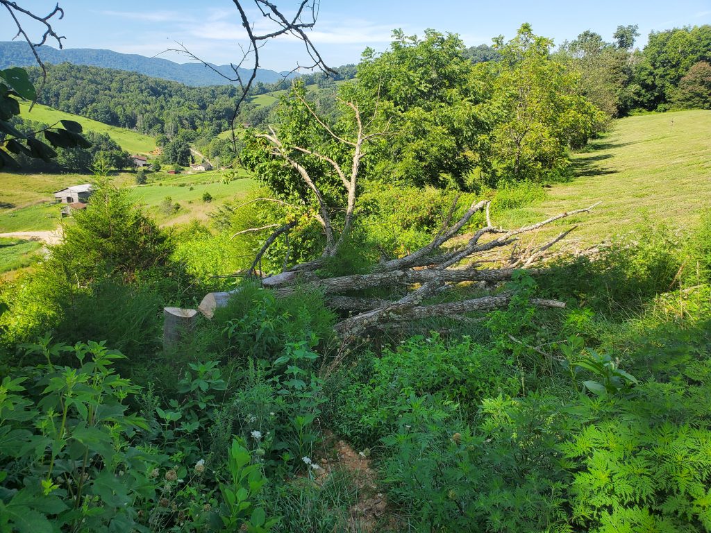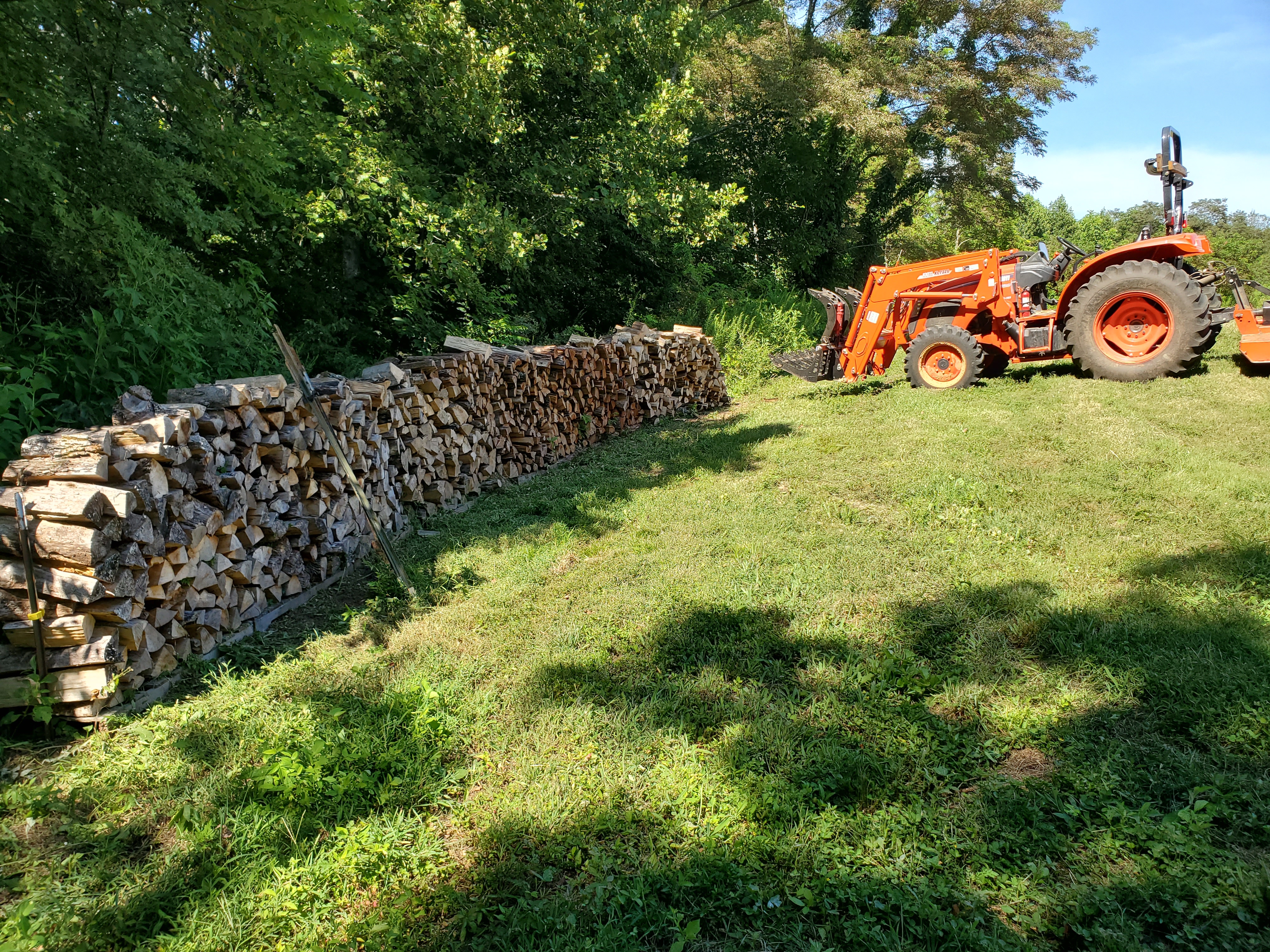 The tree turned out to be much larger and drier than original expected. The wood was fully seasoned as it fell and had been standing dead for many years. This was quickly turned into a nice addition for next winter’s fireplace. While it’s hard to see in the picture, the firewood pile is now over 40 feet long and 4-5 feet high
