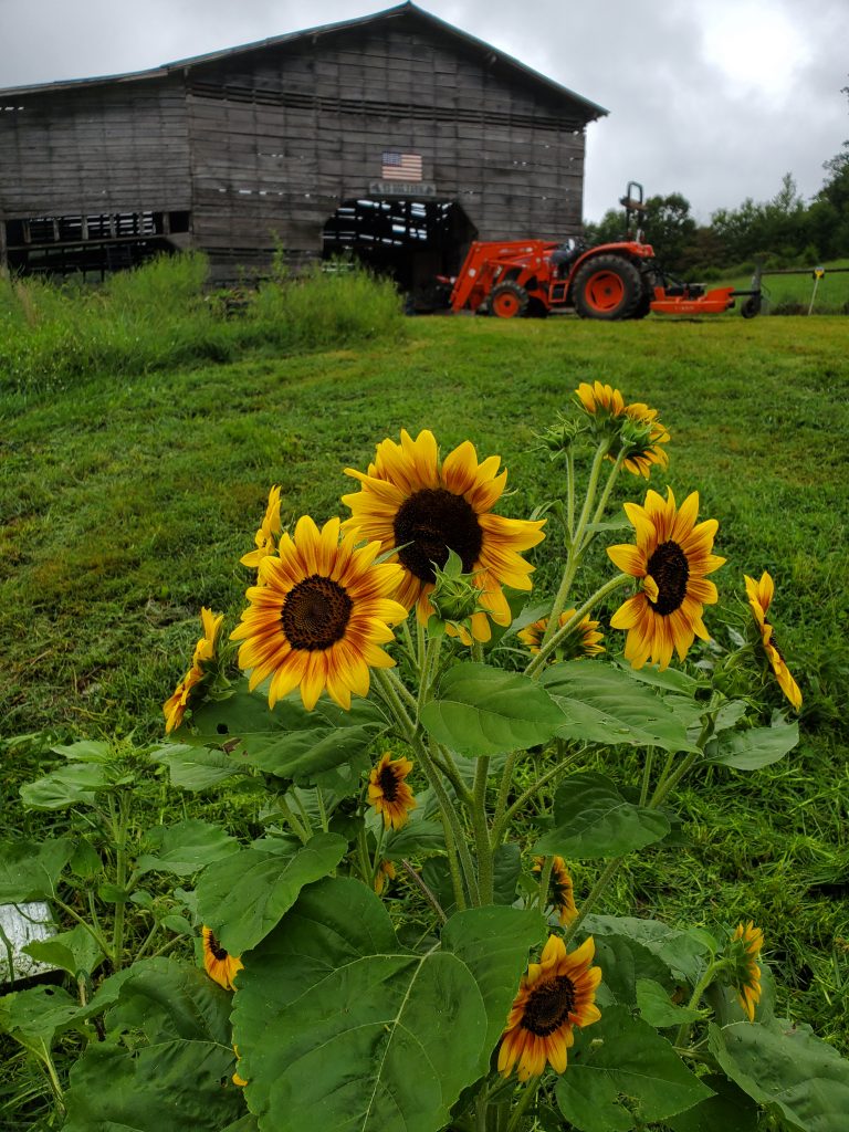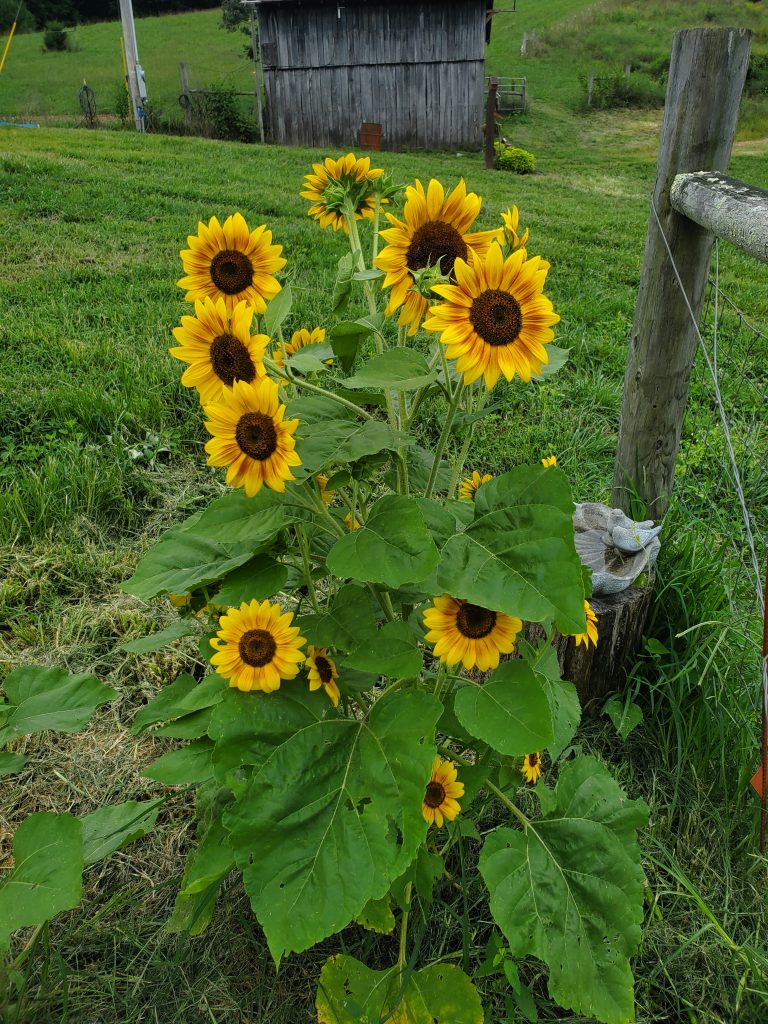 While the sunflowers near the barn were the big focus, a little single sunflower was found growing under the bird feeder