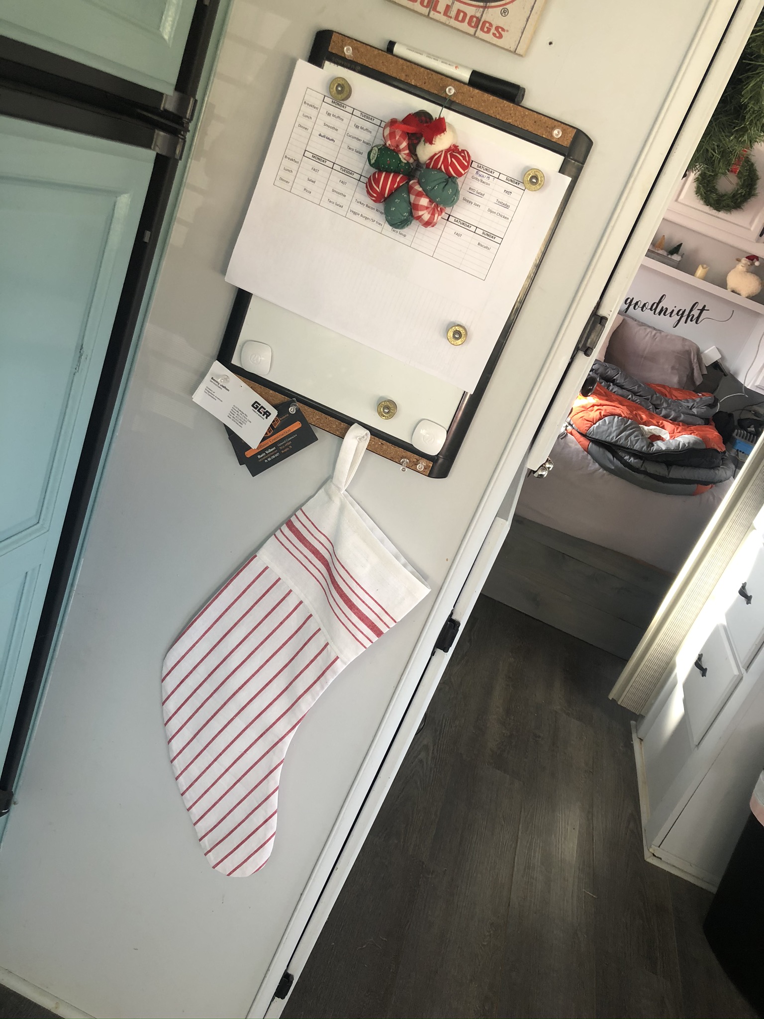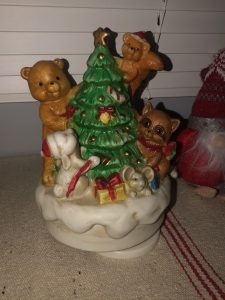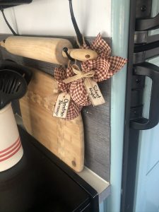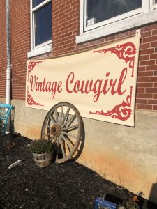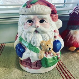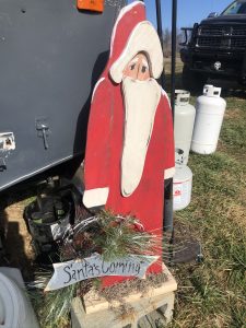 Hello all! Right now, it is all about tag teaming.  The cabin is in a stage of many questions from our foreman, like, how far do you want your windowsill to extend? I honestly never knew that was a choice.  Also, the temps have been dipping (thankfully not daily) in the twenties and we can’t justify leaving the dogs unattended. Please don’t tell me they are farm dogs and can survive. This I know. But, if I am able to make it easier for them, then I will.  Anyway, we feel it important for one of us to be onsite from now until completion. I arrived on Wednesday, the 4th to relieve Al.  He had been here since Saturday, the 30th of November.  We were able to kennel Herc and Teenie this past weekend so, Al drove up and we were able to have a few days together. We got up super early on Saturday and drove to Kingsport.  It’s about 1.5 hours away.  We met up with an old high school friend, Lisa!  It was so good seeing her! She will be my new stylist when I am living up here.  1.5 hour drive beats 4.5 any day and I get to see an old friend at the same time! We met at a Farmers Market where they were having a Christmas craft show. I found a few really good bargains and incredibly nice homemade goods!   I love these!  I’ve been wanting to get back in to either cross stitching or learning to embroider. They both have such a wonderful vintage look.  I snagged both of these for $8!  I’m going to replace the frames with something more vintage or festive. I was so happy to find these! This Santa was handmade by the nicest man at the craft show.  I love how vintage he looks.  This leather door hanger sounds just like Santa on his sleigh!  This was handmade as well. After the market and seeing Lisa, Al and I drove to an antique mall I found on Facebook.  The Vintage Cowgirl.