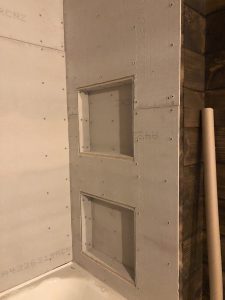 Currently, all the bathrooms are being prepared for tile.