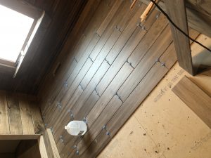 The painters were at the cabin for most of the day applying polyurethane to the main floor area. The basement is all that is left to stain for the interior.