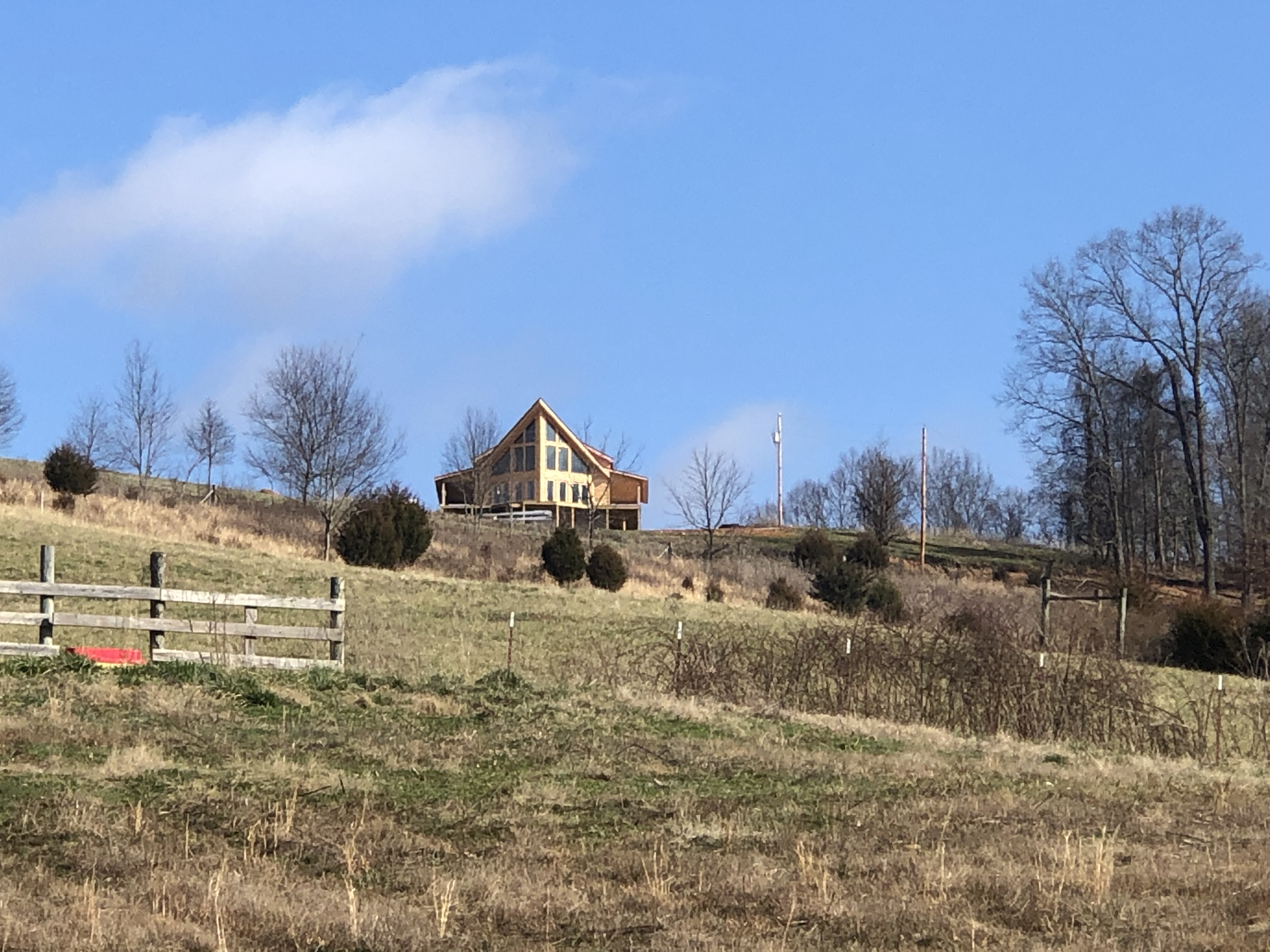 I did venture out on Sunday. I moved our first piece of furniture in the cabin! We purchased it from someone in Kingsport. So, it made sense to leave it here at the farm. I plan on storing my grandmothers handmade quilts in it. 🙂 Once I moved the cabinet over, I came back to the RV, and guess what?, the key lock had somehow gotten semi-turned, so when I shut the door, it locked. And, yes, you guessed it, the keys were inside. I had been talking to Al on my phone, so he was aware. He was in the midst of telling me that there were some tools on the tractor and my phone went dead! Really? It was freezing! I had no phone and I had no clue how to break in the RV. After about 15 minutes of trying, I managed to wiggle a latch on the biggest window and I used a pallet to climb into the RV. And, yes, it left a bruise. I suppose I could have just climbed in through the back and come up from under the bed but, all the solar array batteries and connectors, etc. are stored back there and I honestly didn’t even think about that avenue.