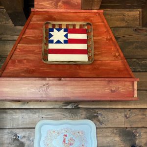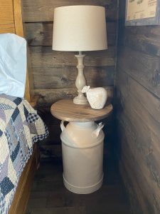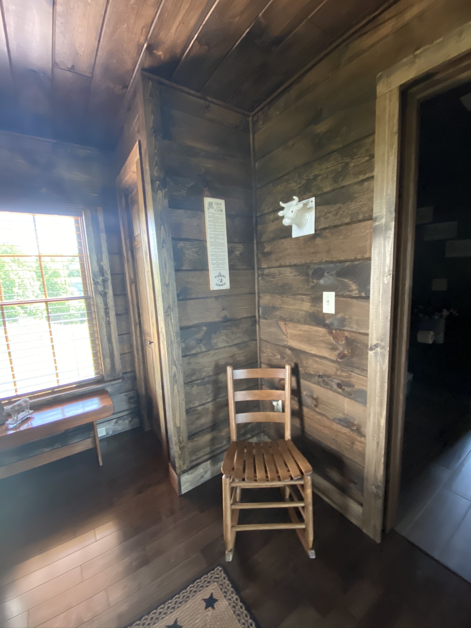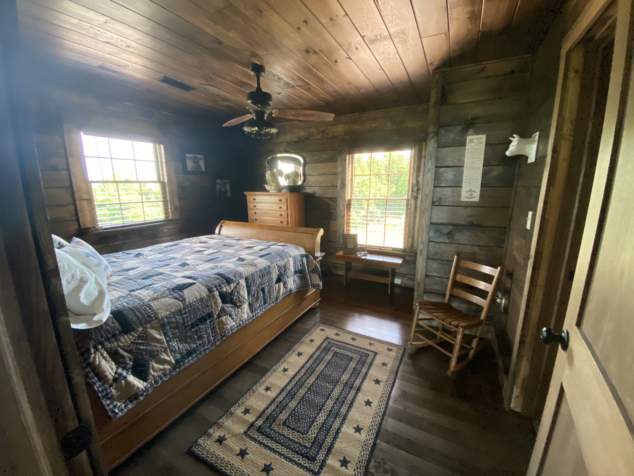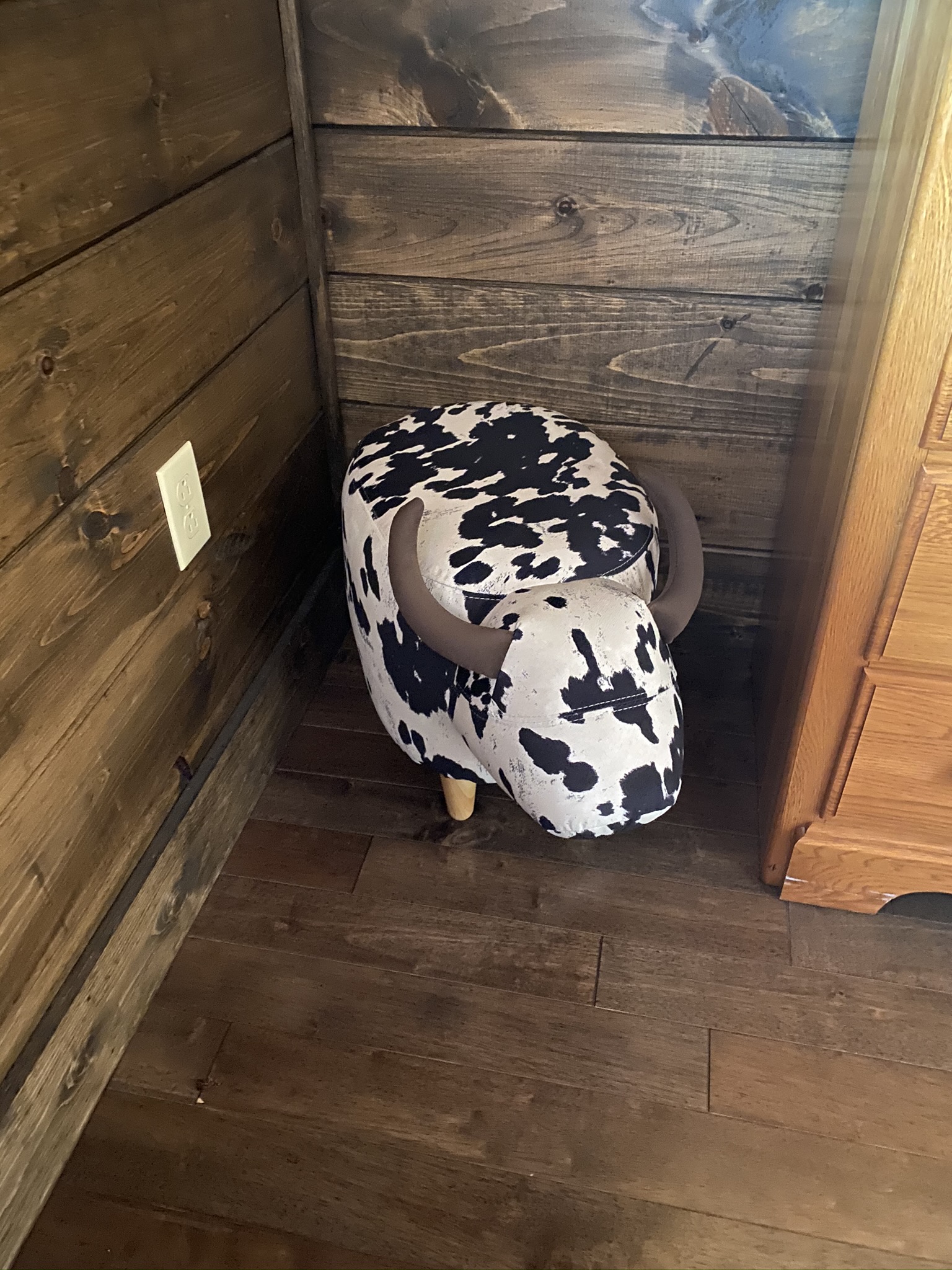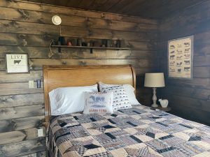 The only bedroom that has been completed is the Cow bedroom. We are still sleeping on the bed that is to go in the Patriotic bedroom. Our new bed is suppose to finally ship this coming week! So excited to get that baby set up. See what you think……